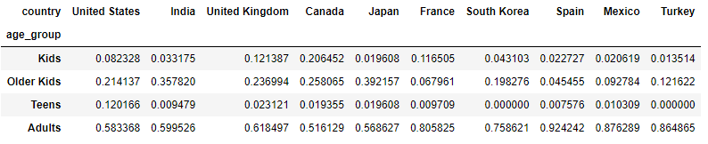 netflix_age_country = netflix_age_country.div(netflix_age_country.sum(axis=0), axis=1)
