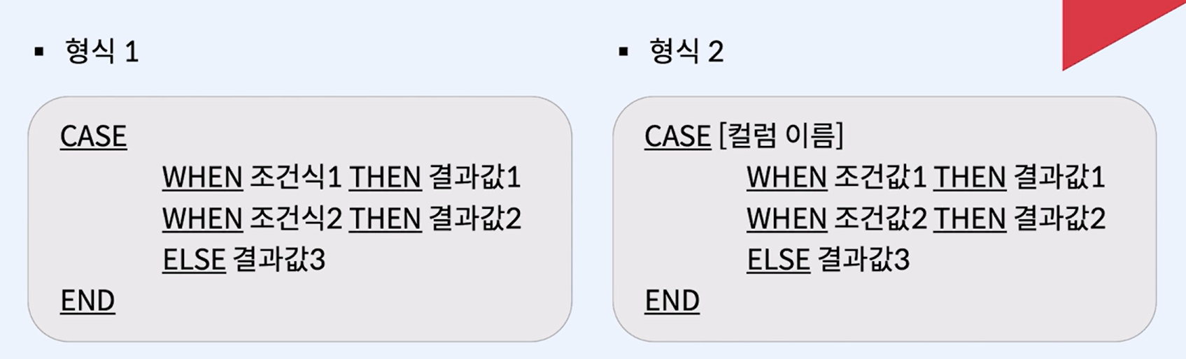 - IFNULL(컬럼명, NULL일 때 결과값)